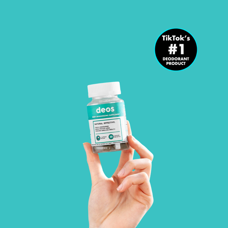 Feel confident all day with DEOS’s odor-neutralizing capsules. One simple dose bans underarm, foot, and breath odors from the inside out.